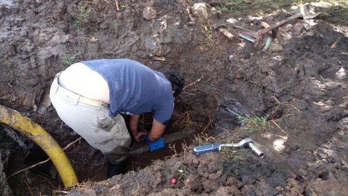 Durante la mañana de hoy, agentes de la Secretaría de Obras y Servicios Públicos, a través de la Dirección de Aguas, realizaron la reparación de un caño de suministro de agua potable que se encontraba dañado sobre calle Italia, frente a la Estación del Ferrocarril.