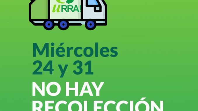 La Dirección de Ambiente informa a la comunidad que los miércoles 24 y 31 de diciembre no se realizará el servicio de recolección de residuos.