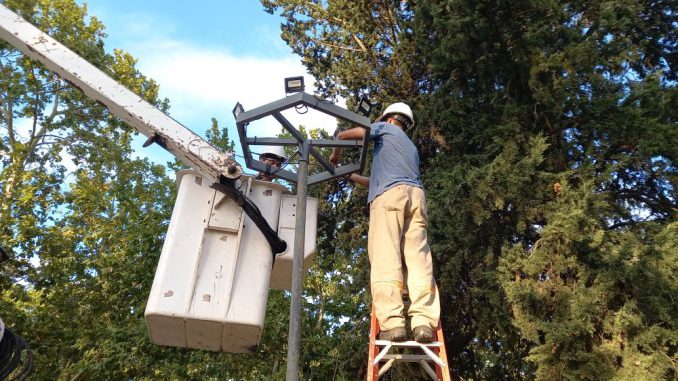 Durante la tarde del lunes, los equipos de trabajo realizaron la renovación de luces en las plazas Independencia y Mitre, con el objetivo de optimizar la iluminación y brindar mayor seguridad a quienes utilizan estos espacios.